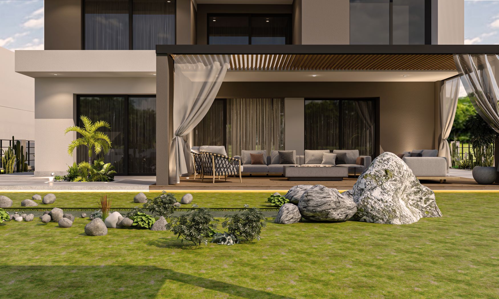 Client Mr.Sherif VillaLocation Mivida Compound-New CairoDesigner AMD Design & Finishing Home.Category Landscape